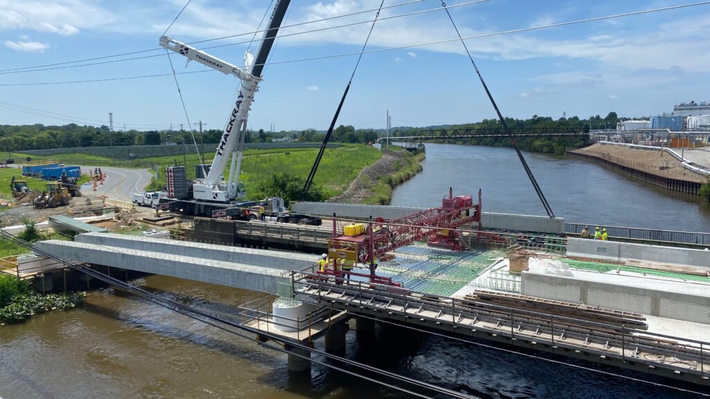 - An additional span at each end of the new bridge was incorporated into the design to relieve concerns about fill over the CRFM, mitigate excessive settlement, and eliminate the need for wick drains, surcharge loads and long quarantine periods during construction.