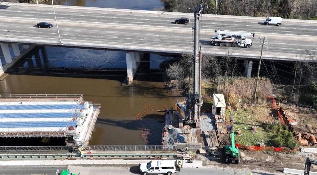 - Drilled shaft foundations were implemented with the permanent casings rotated in, rather than driven piles, due to strict vibration restrictions and concerns about dewatering. The Giken silent piler was employed to install sheeting/shoring that isolated the CRFM from construction loads at the nearby abutment.