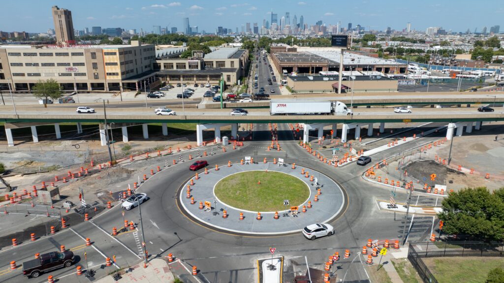 McCormick Taylor was reengaged in the project in 2019 when tasked with completing the preliminary and final design for the new 5-leg, single-lane roundabout in coordination with the City of Philadelphia Department of Streets, the Pennsylvania Department of Transportation (PennDOT), the Southeastern Pennsylvania Transportation Authority (SEPTA), and the Delaware River Port Authority (DRPA). Our team leveraged detailed traffic data, geometric modeling, and multi-year stakeholder engagement efforts to deliver a forward-looking, context-sensitive solution.
