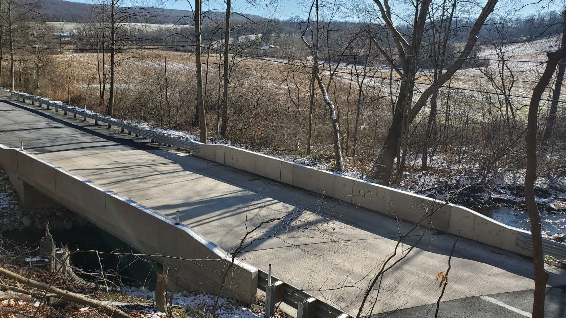 - Approximately 160 feet of approach roadway was widened and reconstructed to meet current PennDOT DM-2 Criteria.