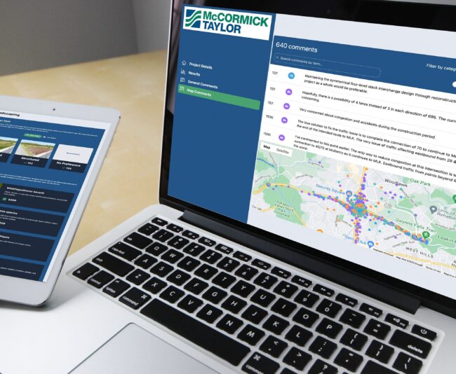At McCormick Taylor we design and build a range of GIS and technology solutions that solve real-world problems from custom software applications and interactive websites to spatial analysis and public engagement tools. Our technology team combines research-driven, human-centered design with strategic thinking and deep technical expertise. We collaborate closely with clients to craft tailored products that align with their goals and meet their users’ needs.